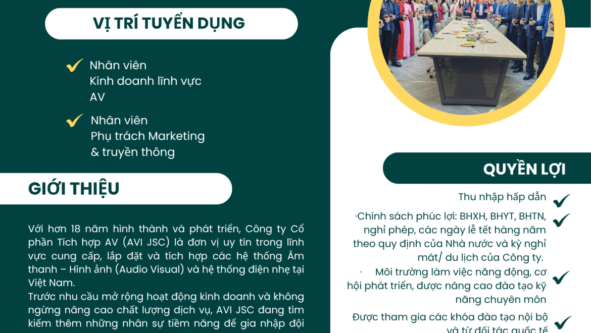AVI JSC luôn chào đón bạn trở thành một phần trên hành trình TỎA SÁNG